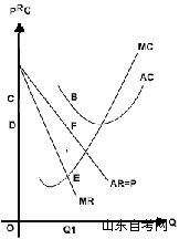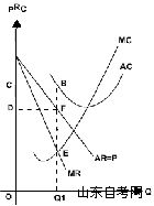 如图:MR=MC的产量是最佳产量,OQ1为利润最大时的产量,此时,平均收益为OB,平均成本为OD。