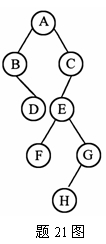 21.若用后根遍历法遍历题21图所示的二叉树,其输出序列为__________.