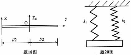 18.如题18图所示,均质细长直杆长l,质量为m,直杆对其形心轴Zc的转动惯量为_______________.