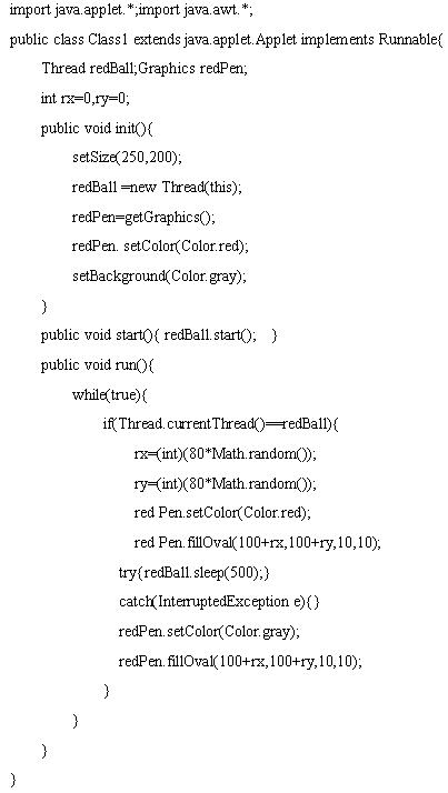 36.小应用程序创建一个线程.例子使用容器类方法getGraphics()获得Graphics对象,给线程作为画笔使用.请写出该程序中这个线程的工作内容.