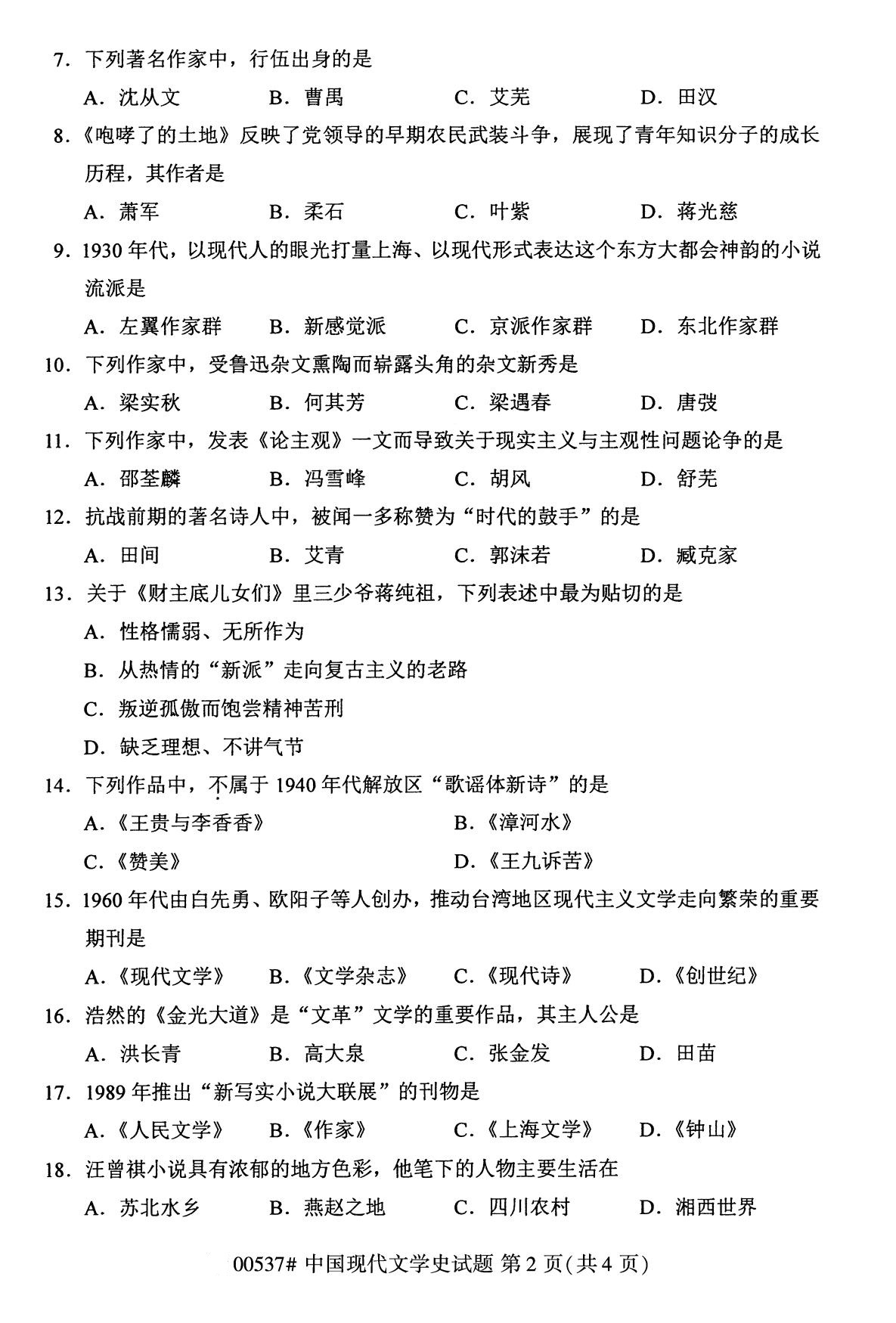 本文标签:江西自考 中国现代文学史 江西省2020年8月自学考试本科00537中国现代文学史真题