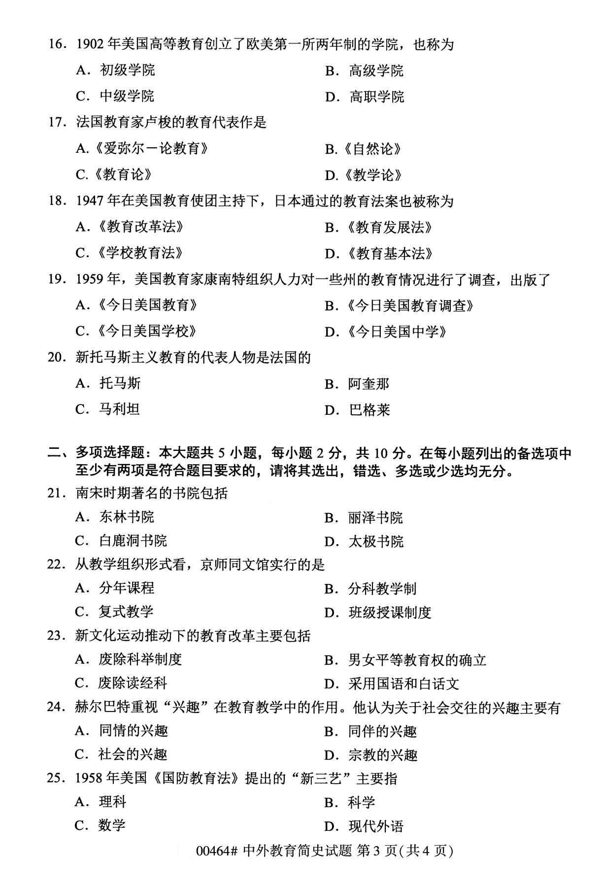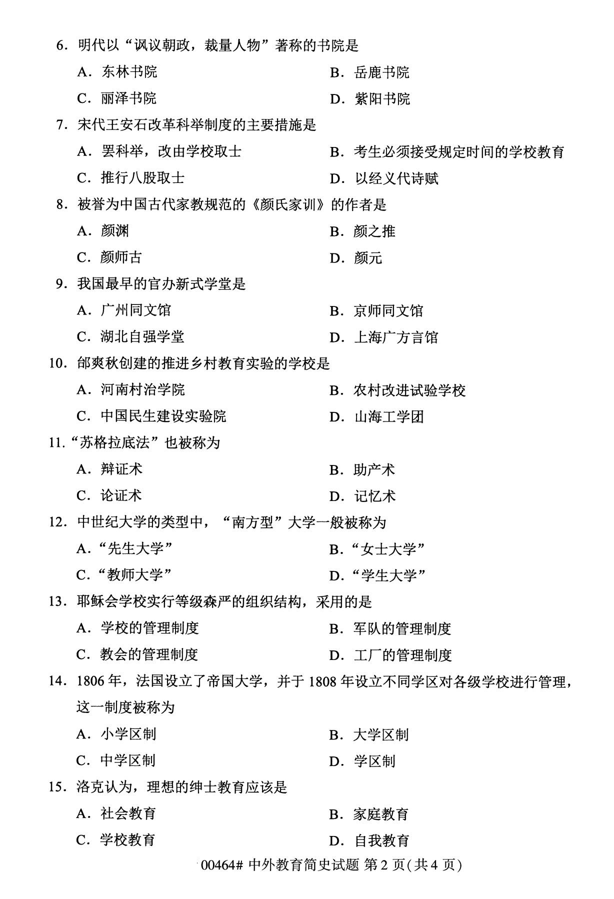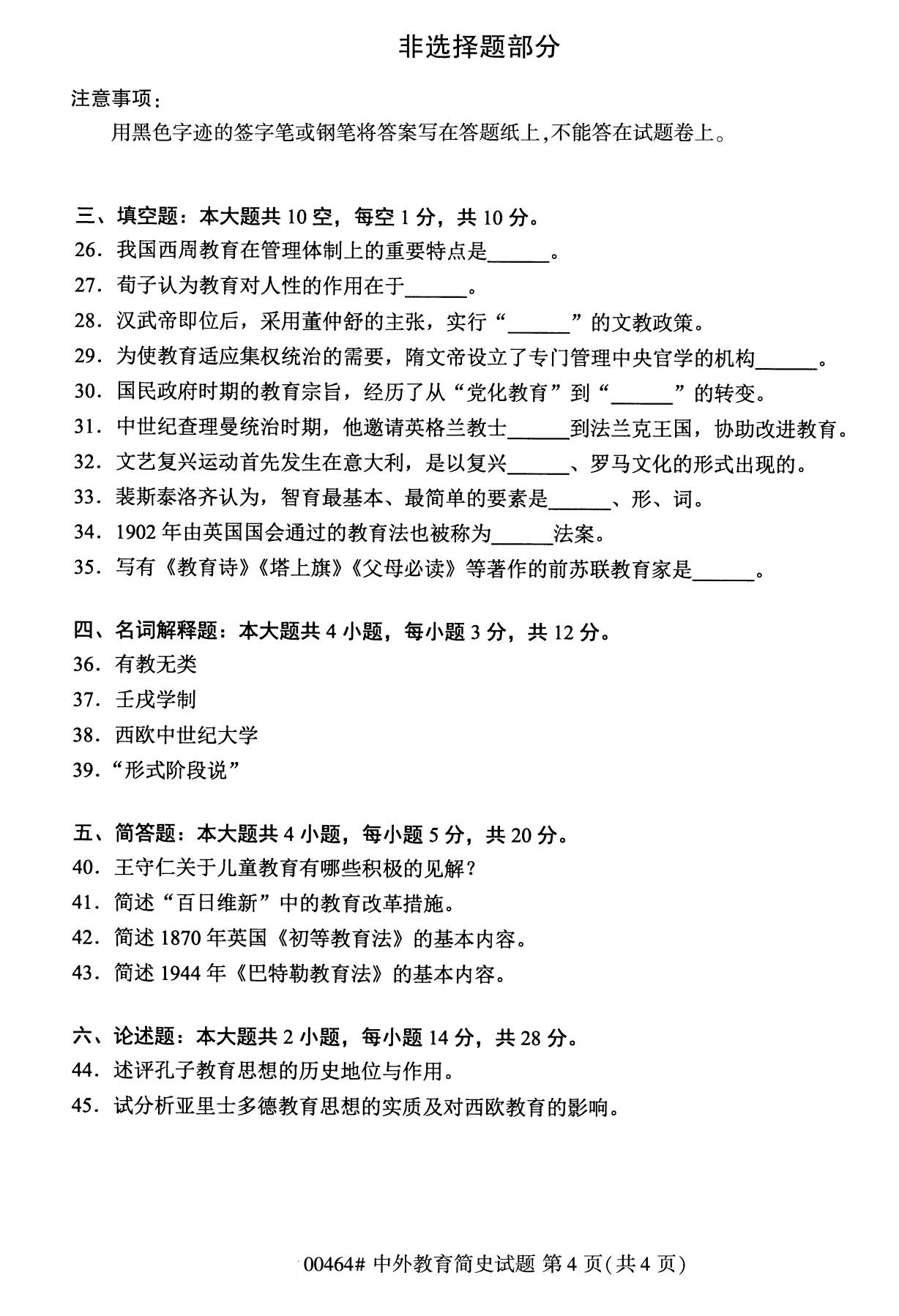 2020年8月江西省自学考试本科00464中外教育简史真题