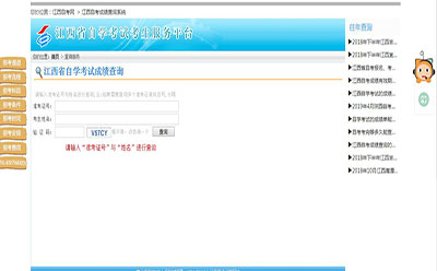 2、点击进入后可以看见江西自考成绩查询页面,考生需要输入准考证号、考生姓名及右侧验证码,再点击右方的查询按钮,即可查询自考成绩: