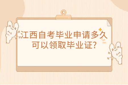 江西自考生从申请毕业成功到发放领取自考毕业证的时间大概在3个月左右的时间(各地时间并不相同,详情可以咨询所在地自考办工作人员),再发放毕业证前,各地教育考试院会下发领取通知,自考生在规定时间内前往指定地点领取即可。