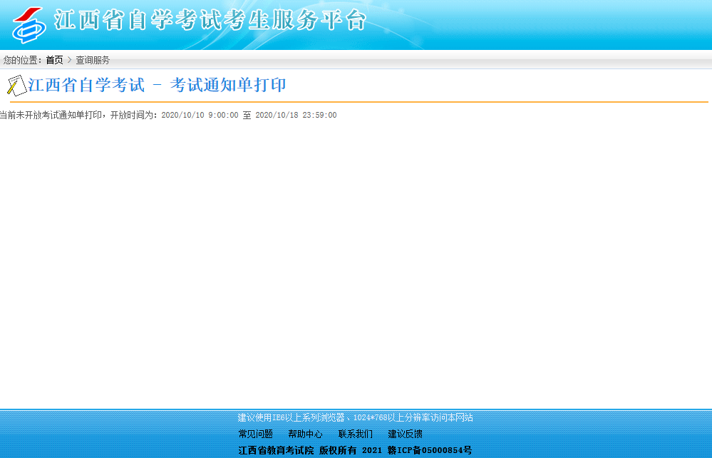 1、考生登录江西教育考试院(http://www.jxeea.cn/)首页,点击准考证打印,进入江西教育考试院打印系统。