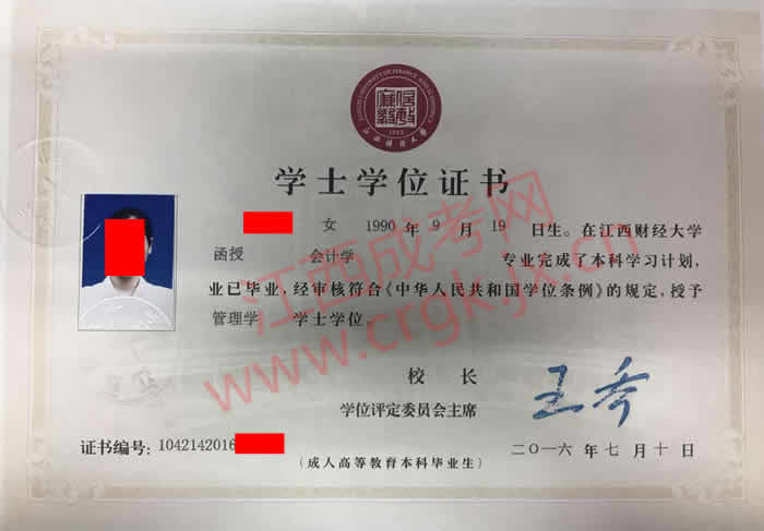 本文标签:江西自考 证书样本 江西财经大学自考学位证书样本